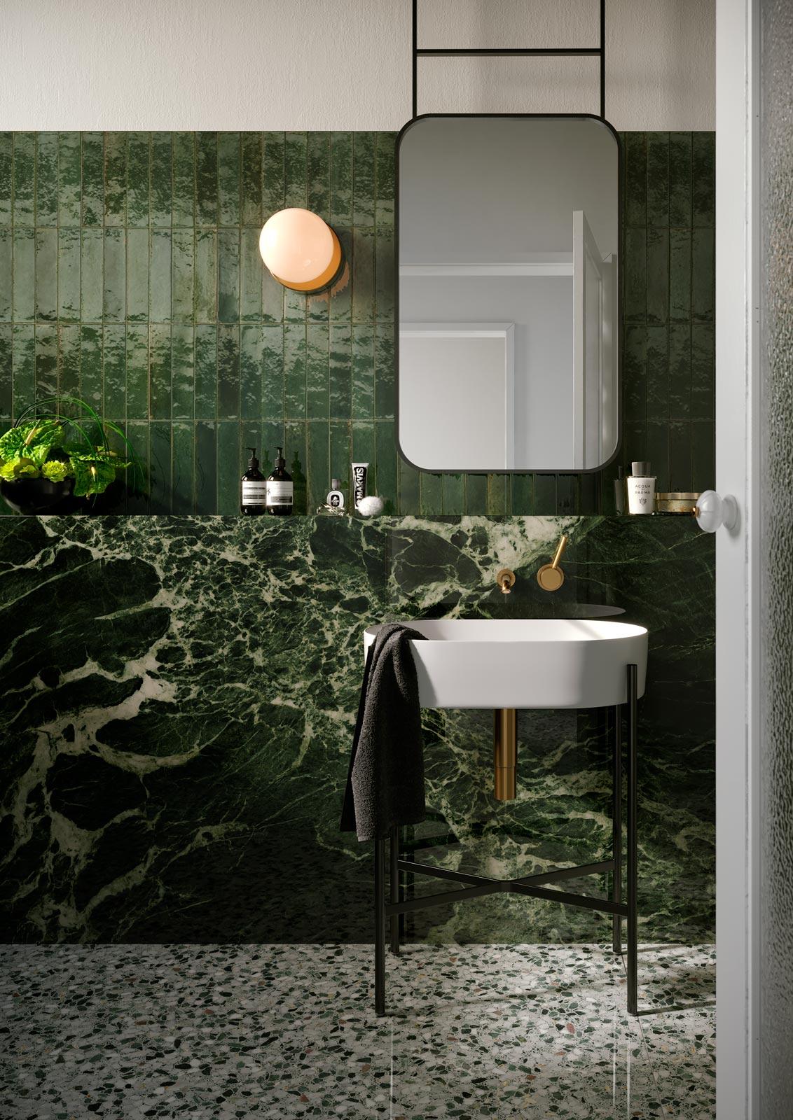 Una doccia multifunzione con bagno turco potrebbe essere l’input per pensare, invece, a un bagno moderno effetto spa ispirato al bagno turco o hammam completamente rivestito e pavimentato in marmo per un effetto elegante e sontuoso. Le grandi lastre in gres porcellanato effetto marmo della linea Grande Marble Look, che riproducono con elegante fedeltà ben 17 varietà di marmi e pietre, non fanno solo da pavimento e rivestimento per il bagno effetto spa, ma possono essere lavorate per creare arredi su misura: ad esempio un mensolone con lavabo incassato, un mobile, la vasca da bagno.
