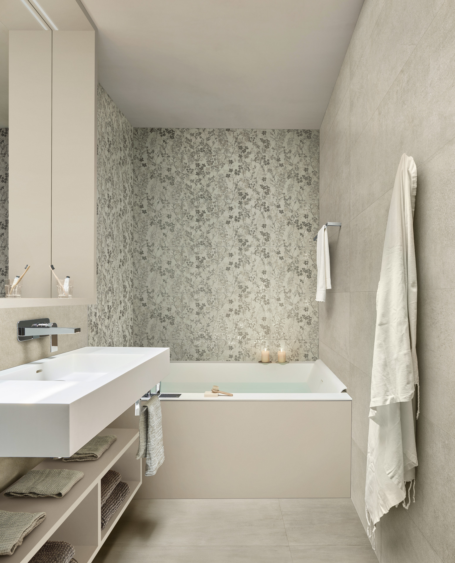 Una volta completata la pulizia, è importante risciacquare velocemente con acqua pulita, in modo da eliminare ogni residuo di prodotto. Questo semplice accorgimento consente di mantenere la brillantezza tipica del gres porcellanato e di preservare il colore naturale delle fughe, evitando ingiallimenti o aloni nel tempo.