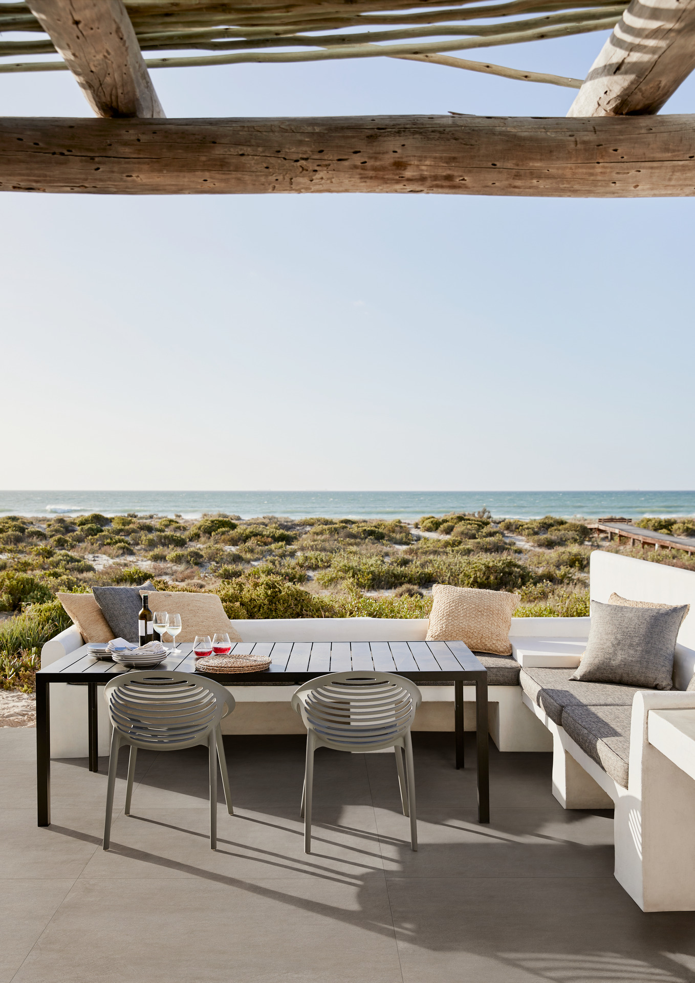 Innanzitutto, considera che il pavimento degli spazi esterni deve coordinarsi con lo stile indoor. Questo non significa necessariamente che debba essere identico, ma piuttosto richiamare i principali riferimenti stilistici (una finitura materica, parte della palette cromatica, un formato).