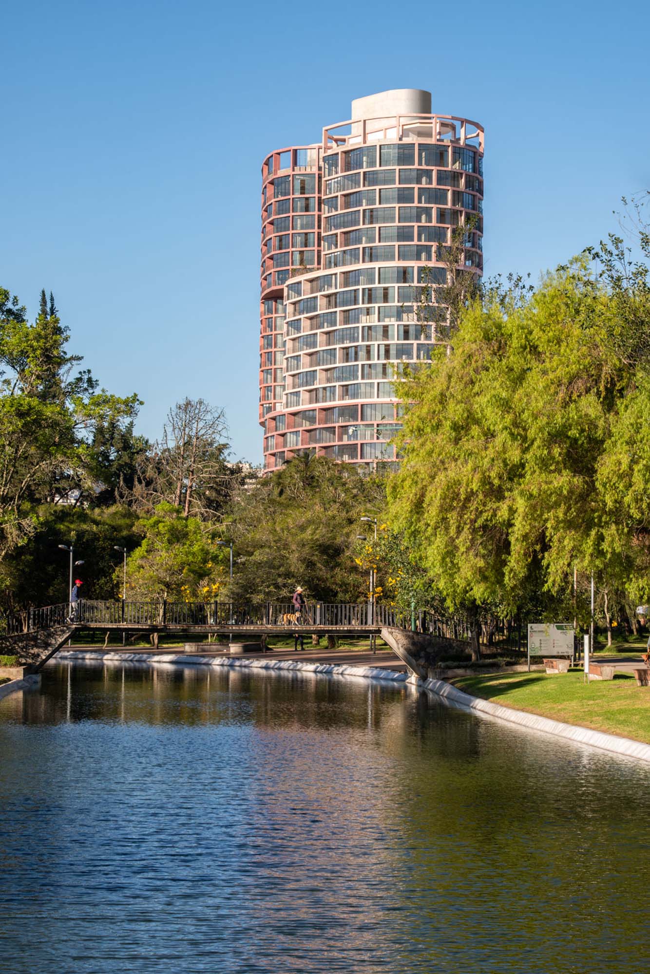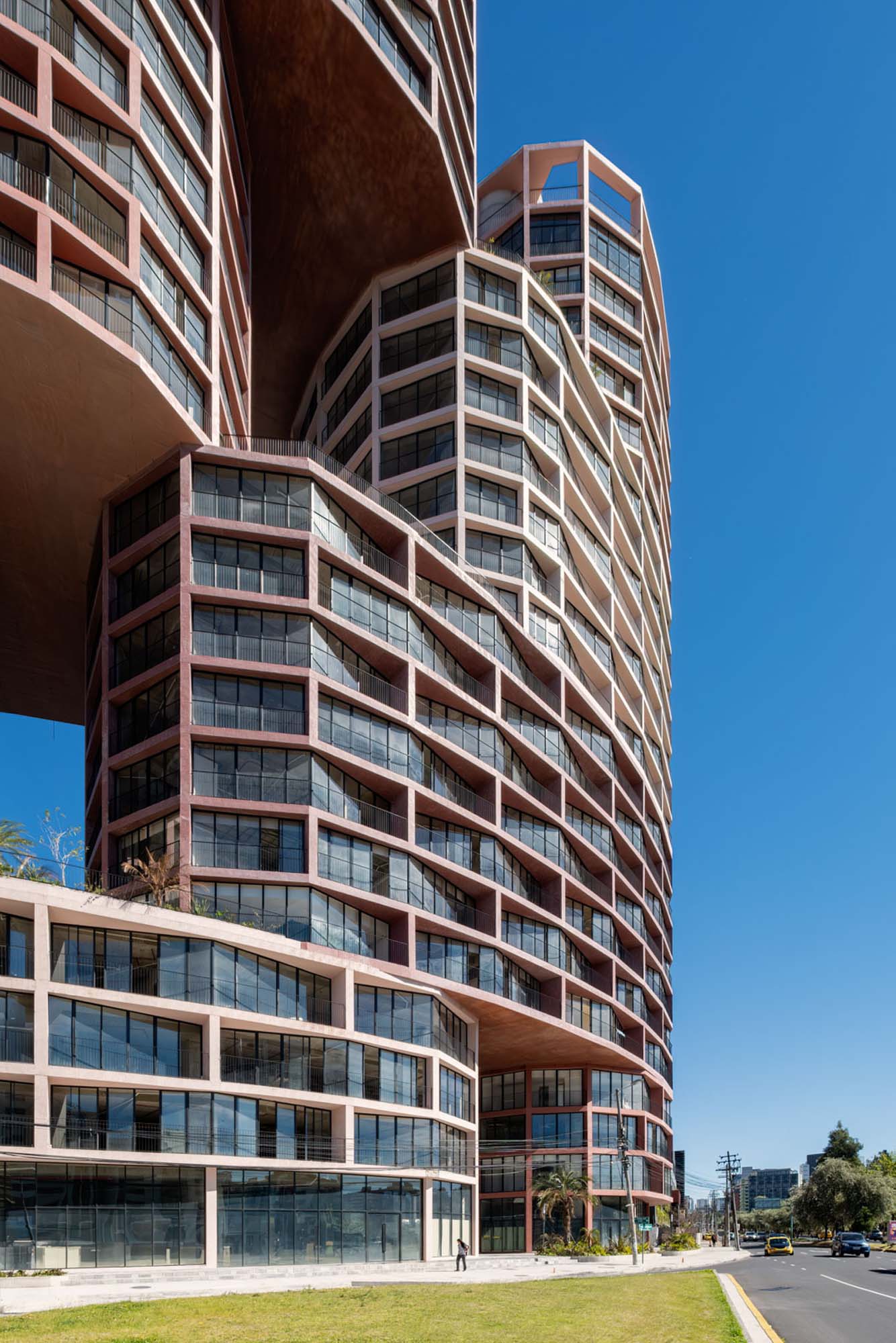Descritto come una “città verticale”, EPIQ si sviluppa in altezza per ventiquattro piani, ospita spazi residenziali, commerciali e uffici nel quartiere Parque La Carolina della città di Quito, in Equador. Il suo design si ispira agli elementi dell’architettura della vicina città vecchia, patrimonio mondiale dell’UNESCO. Un progetto improntato alla sostenibilità ambientale in tutto il suo percorso realizzativo, dalla progettazione al futuro possibile riuso o demolizione. Tra le dotazioni dell’intervento urbano, un impianto di trattamento delle acque grigie che riutilizzerà la pioggia e un archivio di materiali che consentirà di riutilizzare e riciclare gli elementi della costruzione a fine vita. Gli angoli arrotondati dell’edificio e ampi patti pluripiano – risultato degli spazi lasciati tra i due blocchi della costruzione – consentono viste panoramiche sulla città.