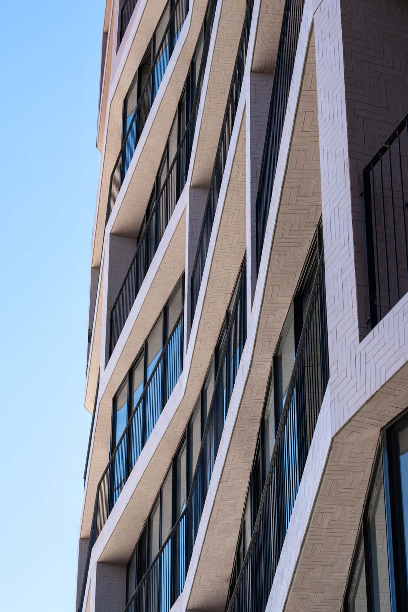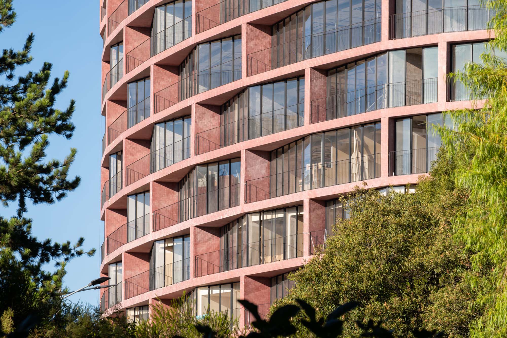 Il blocco residenziale, nel suo sviluppo in due volumi che si intersecano, forma un quartiere verticale che esemplifica un nuovo approccio all’integrazione dello spazio urbano con un edificio ad alta densità abitativa che vuole promuovere il concetto di comunità.