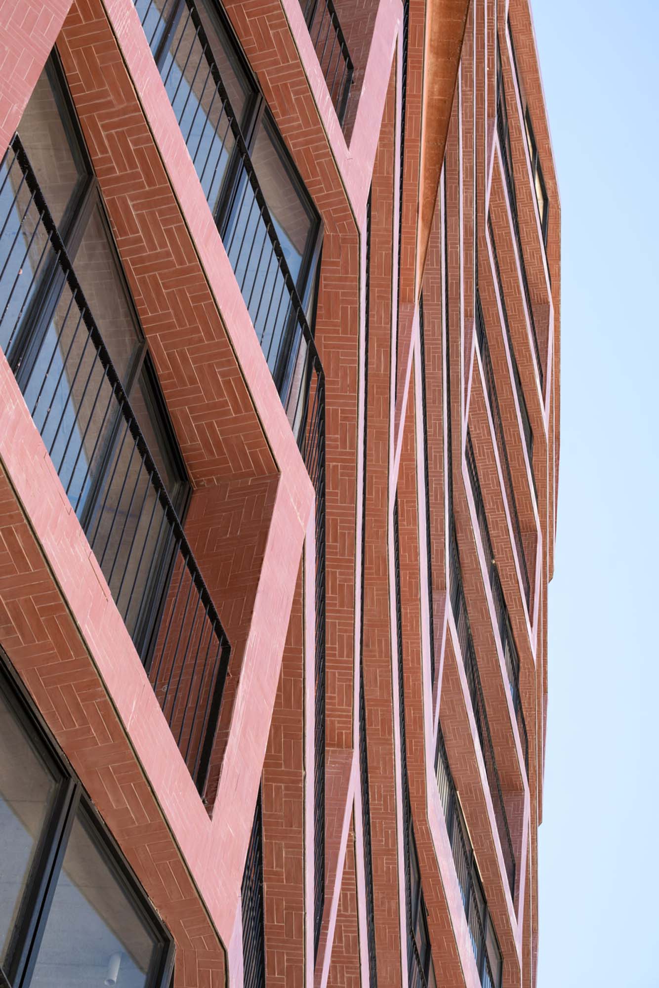 Per sviluppare questa idea di architettura Marazzi ha lavorato ad una linea personalizzata, mattoncini in gres fine porcellanato monocalibro, dello spessore di 9 mm, nella dimensione definita per questo progetto di 6×24 centimetri. Il prodotto è certificato Greenguard, Declare e HPD, garanzia della provenienza delle materie utilizzate per produrlo, minori emissioni nell’aria e nell’acqua, un’informazione trasparente nei confronti del consumatore e nella gestione del fine vita, con il successivo smaltimento e recupero delle piastrelle. Una consapevolezza ambientale in pieno accordo con la progettazione del ciclo di vita del nuovo edificio.