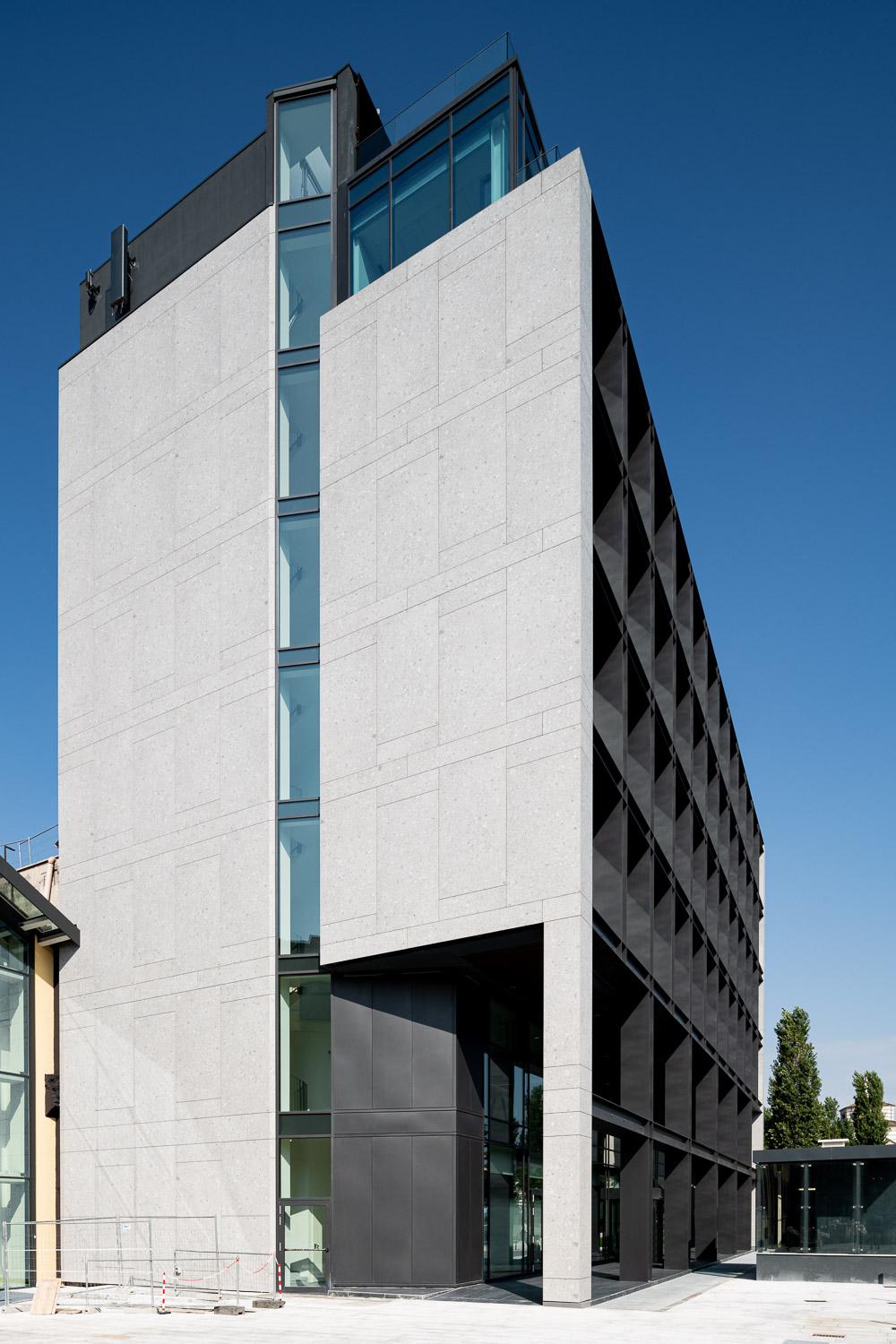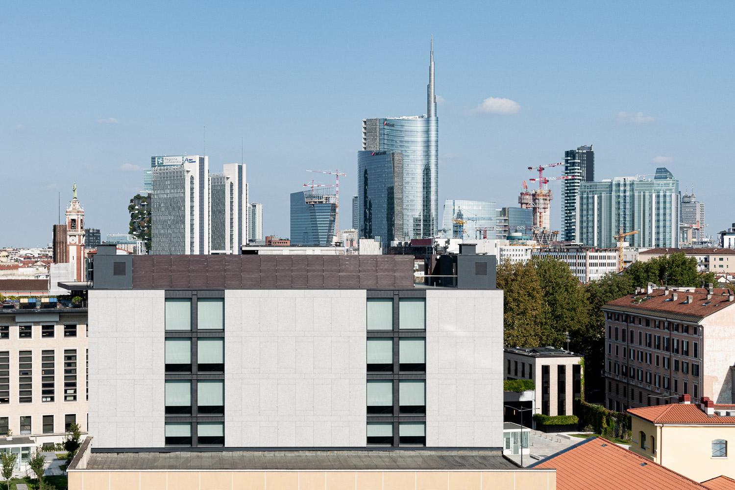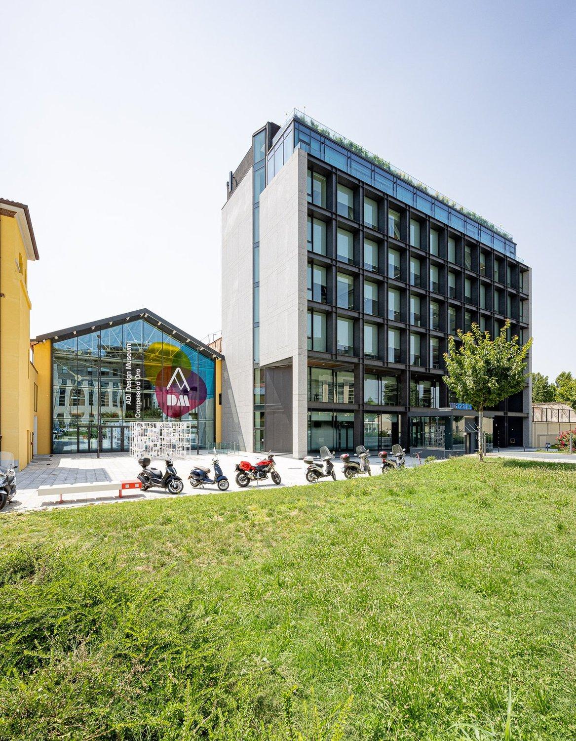 Il profilo originario è stato conservato, mantenendo oltre il 60% della struttura esistente, mentre gli spazi interni sono stati ridistribuiti per creare ambienti di lavoro open space. “Tenendo pur sempre in conto l’espressione di un prodotto architettonico indipendente e personale, abbiamo cercato di considerare le caratteristiche architettoniche dell’immobile nel suo contesto di frenetica rigenerazione urbana, nel quale però gli edifici limitrofi esistenti sono stati mantenuti nella loro struttura e sono riconducibili alla tipica edilizia industriale milanese”, racconta l’architetto Asti. Le facciate originarie sono state sostituite da facciate continue a tutt’altezza, di cui in parte ventilate (i lati corti), costituite da serramenti altamente performanti che garantiscono ottime prestazioni termiche ed acustiche.