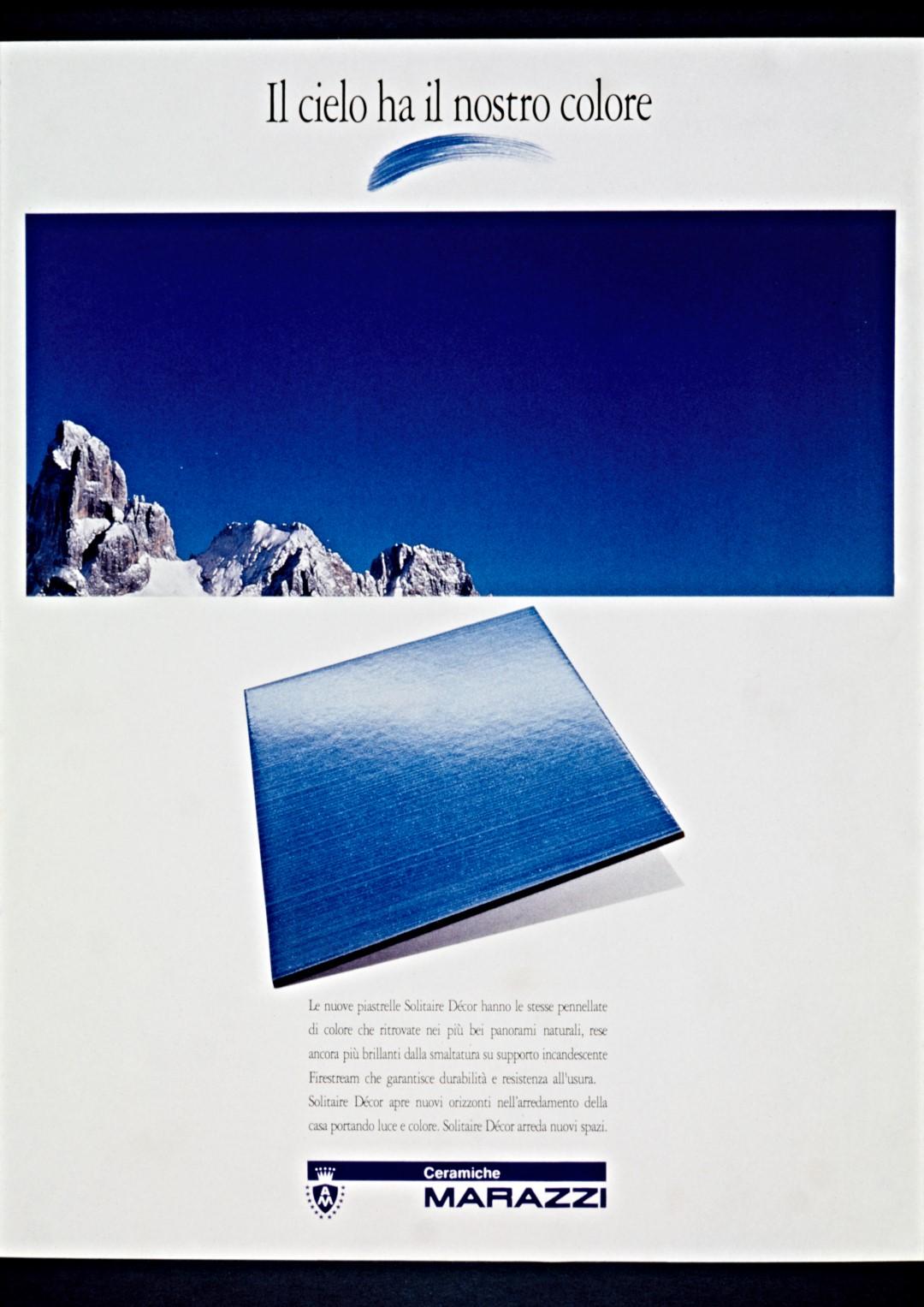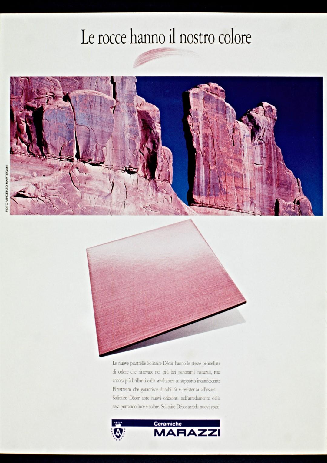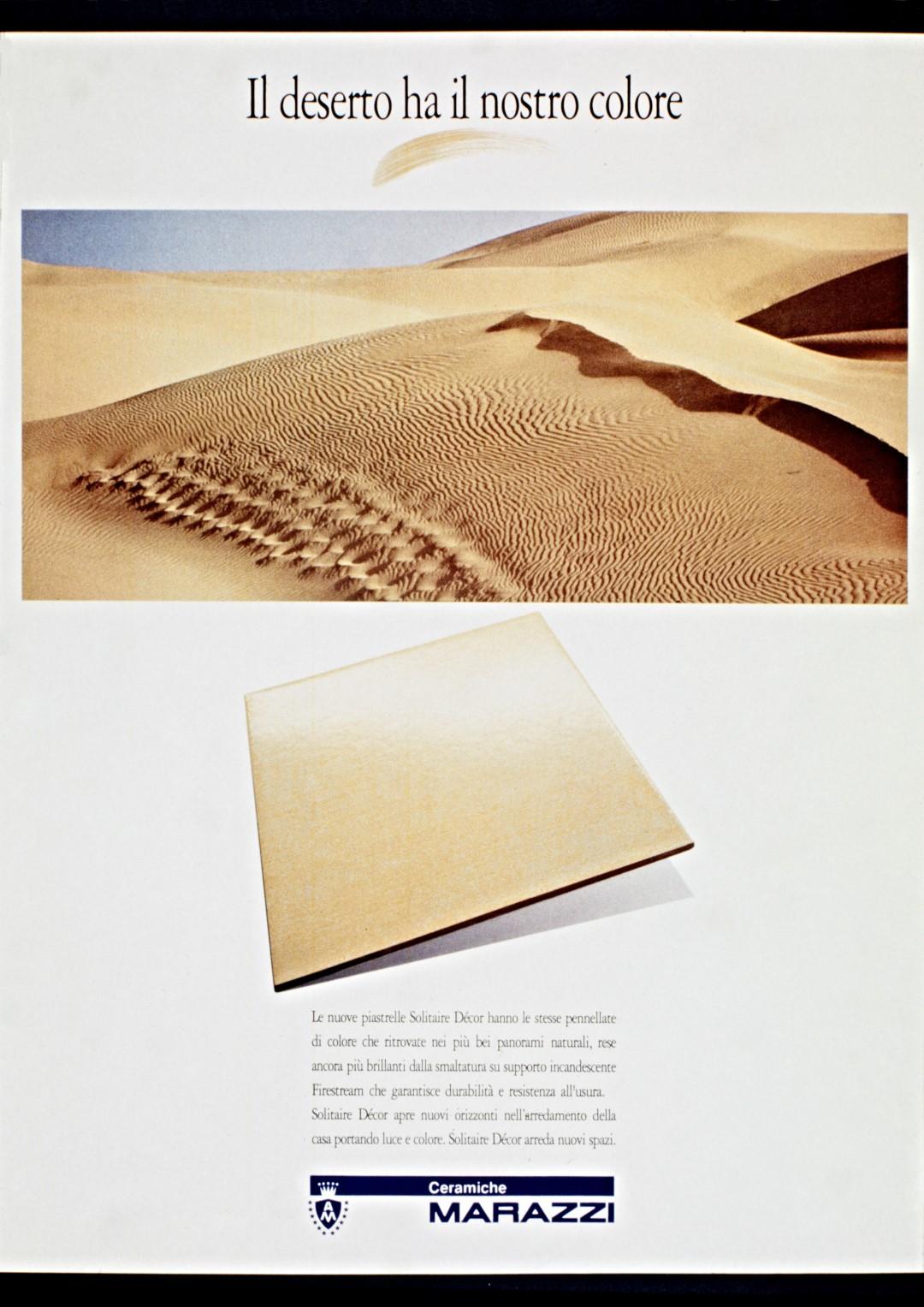 Il cielo, il deserto e le rocce sono gli elementi naturali protagonisti delle campagne sul colore degli Anni 90, ma con un punto di vista rovesciato: è l'elemento naturale ad avere il colore della piastrella, non essa ad ispirarsi al primo. Il tema del colore è stato più volte percorso dall'azienda: da Marazzi Atomar del 1979 ai Colori di Marazzi, l'ampia palette cromatica sviluppata negli Anni 80 e ampliata nel 2001.