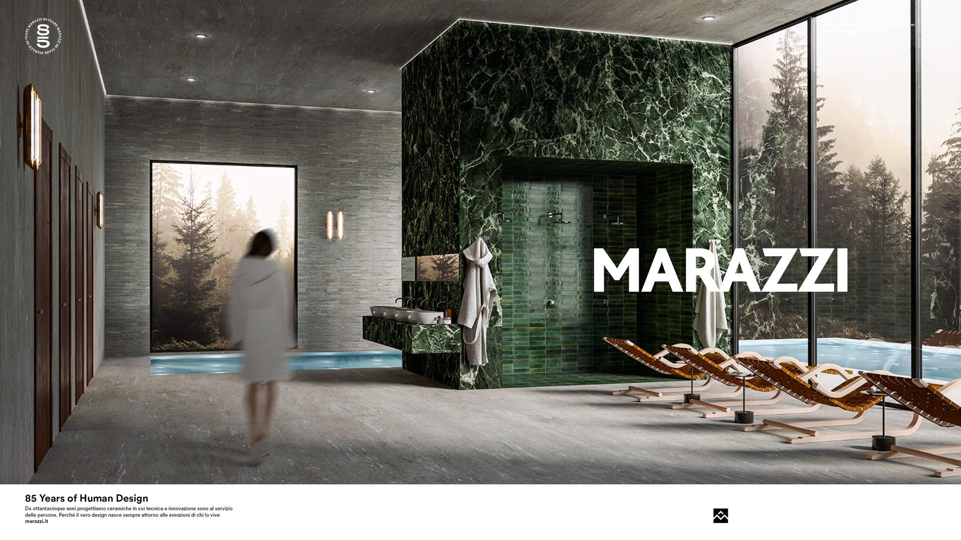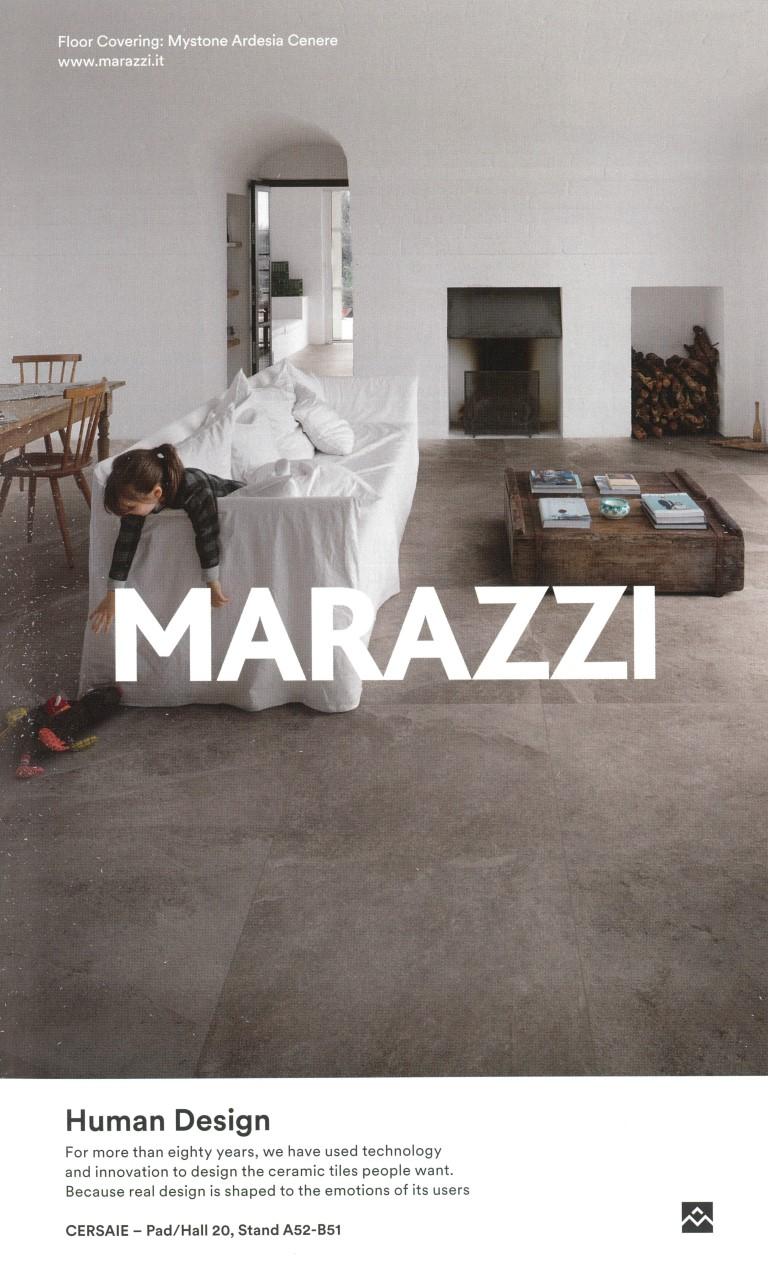 Ripercorrere le campagne pubblicitarie di Marazzi significa rileggere non solo la storia delle innovazioni dell'azienda di Sassuolo ma anche, più in generale, raccontare il rivestimento ceramico e i suoi impieghi nel quotidiano ripercorrendo le oscillazioni del gusto e i linguaggi della comunicazione visiva. Gli oltre 85 anni di storia dell'azienda consentono di raccogliere una lunga testimonianza di tabellari e spot pubblicitari dagli anni Cinquanta a oggi, che mostrano il diverso approccio, spesso sperimentale e inedito, di artisti, fotografi e art director alla comunicazione pubblicitaria.