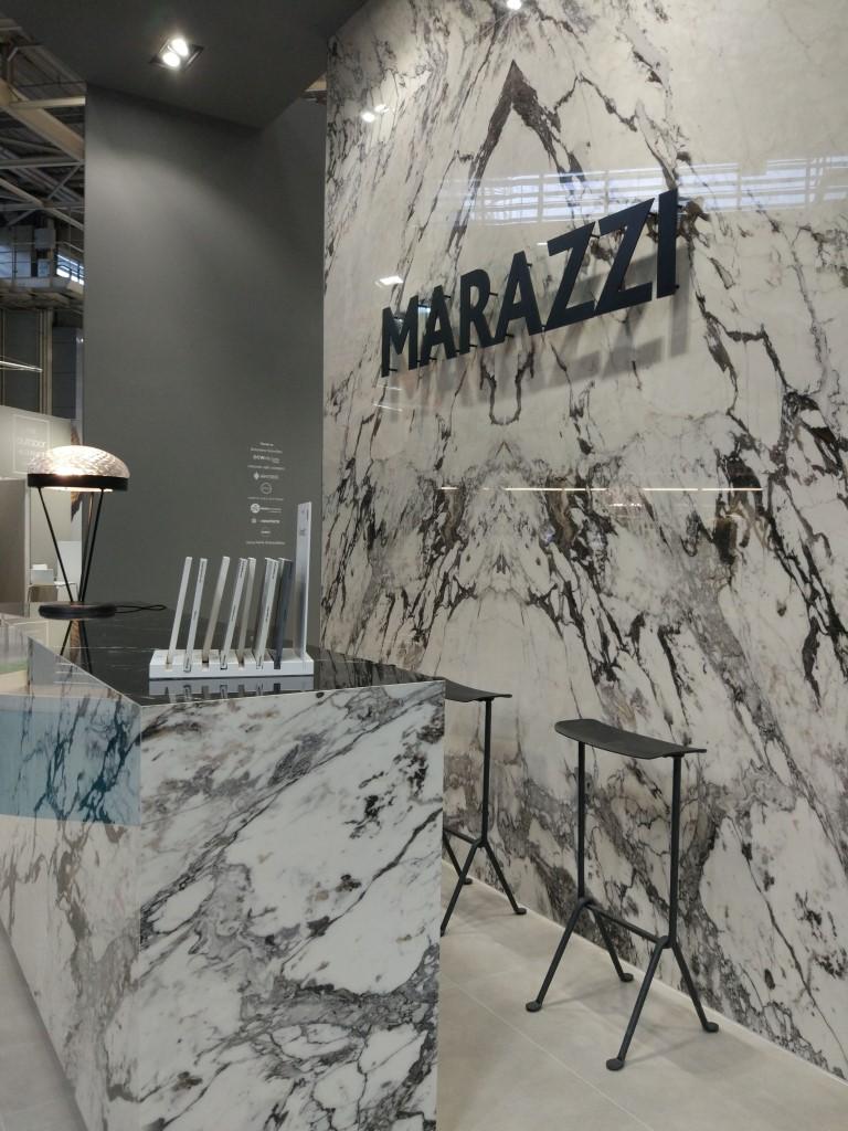 Marazzi conferma per la seconda volta la propria partecipazione alla fiera leader nel settore alberghiero e della ristorazione EquipHotel Paris. Protagonista dello Stand Marazzi Grande, la collezione di lastre in gres porcellanato disponibile in 4 formati – 120×120, 120×240, 160×320, 162×324 -, due spessori e in 4 diverse espressioni materiche – effetto marmo, cemento, pietra e metallo – e in due colori pieni in bianco e nero. A completare la collezione una vasta gamma di mosaici e decorazioni tailor made che permettono infinite possibilità di personalizzazione.