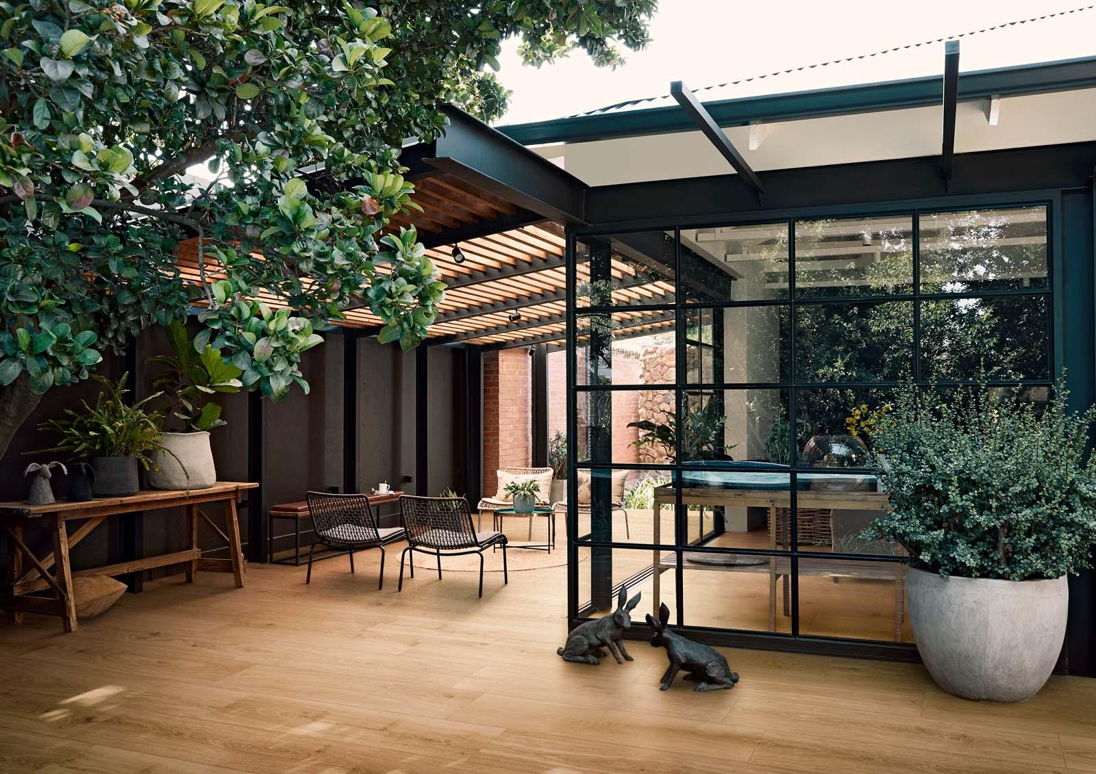 Se con vero Vero l’estetica del legno espressa dalla ceramica esaltava lavorazioni ricercate, piallature a mano e forti discromie, in Oltre questa si evolve verso un rovere pregiato, un legno dal caldo minimalismo di sapore scandinavo e contemporaneo. Versatile per gamma cromatica (White, Natural, Sand e Caramel), formati (22,5×180-20×120-30×120 cm), finiture (naturale o grip), applicazioni (indoor/outdoor, residenziale/commerciale leggero), Oltre si propone come un parquet ceramico estremamente evoluto, a cui la nuova tecnologia Sublime Sync dona un aspetto naturale matt iper-realistico.
