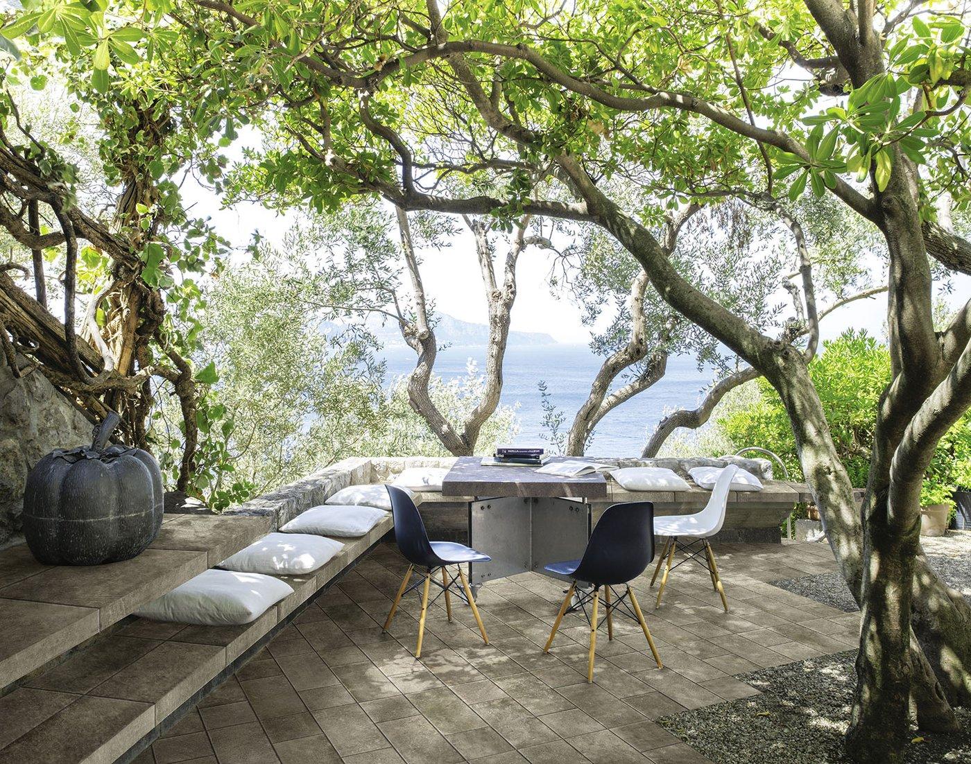 Marazzi, per quel che riguarda i pavimenti per terrazze esterne effetto pietra, propone diverse soluzioni: tra queste Memo, una collezione interamente pensata per rivestimenti outdoor, e Mystone Ceppo di Gré20, disponibile anche nella versione per interni.