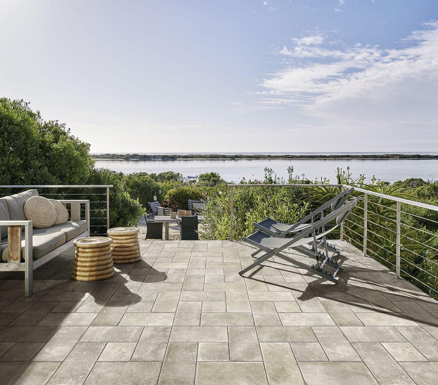 Nell’insieme, il pavimento per terrazzo esterno effetto pietra dona all’ambiente sfumature naturali, resistenti ed eleganti e si integra elegantemente e con continuità all’ambiente circostante.