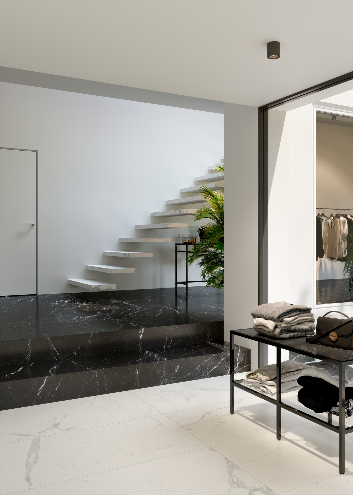 Il gres porcellanato può trasformare le scale in veri e propri elementi di design, favorendone l’integrazione armoniosa con il resto dell’ambiente e creando continuità stilistica tra i vari spazi.