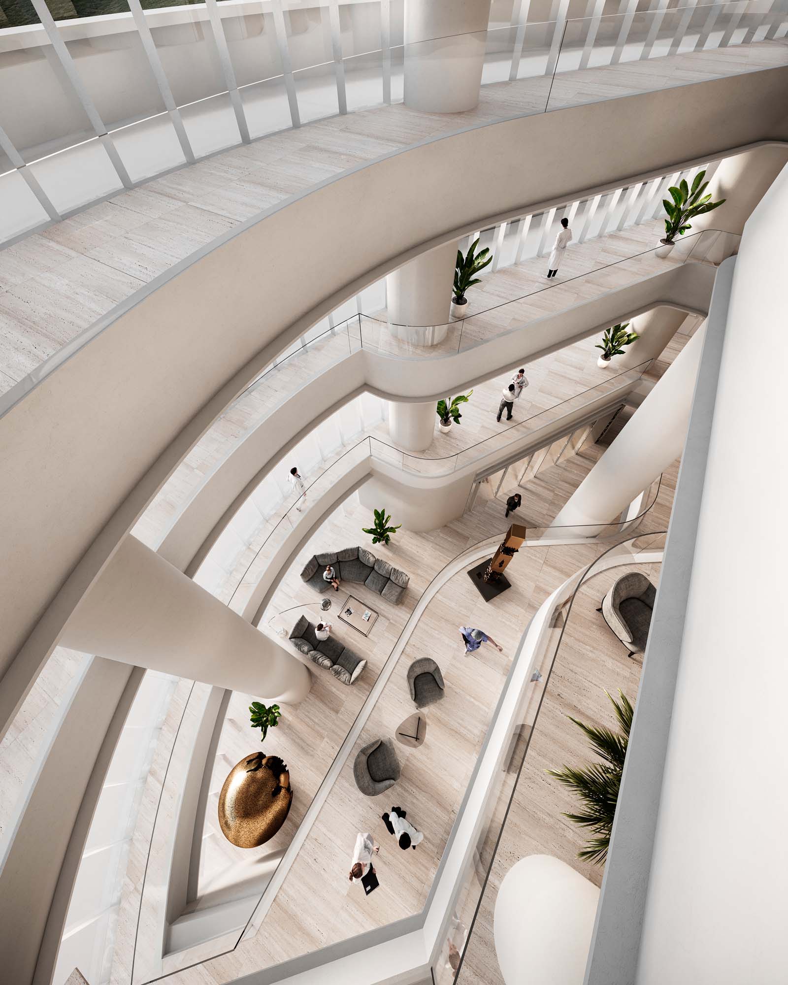 Il layout architettonico e distributivo deve garantire un elevato standard di privacy, personalizzazione, umanizzazione e comfort, al fine di sfumare gli elementi caratterizzanti l’ospedale quale luogo di cura, favorendo la percezione di accoglienza, professionalità, sicurezza e benessere abitativo per utenti e operatori. L’ospedale diventa un organismo compatto e fluido, strettamente integrato e coordinato con gli edifici esistenti. Per ottenere ciò è necessario adottare una maglia strutturale flessibile e aperta, che non induca sprechi di superfici e inutili costi di gestione. La nostra metodologia, acquisita in decenni di progettazione ospedaliera, ci ha portato a definire le linee guida per l’ospedale del futuro.