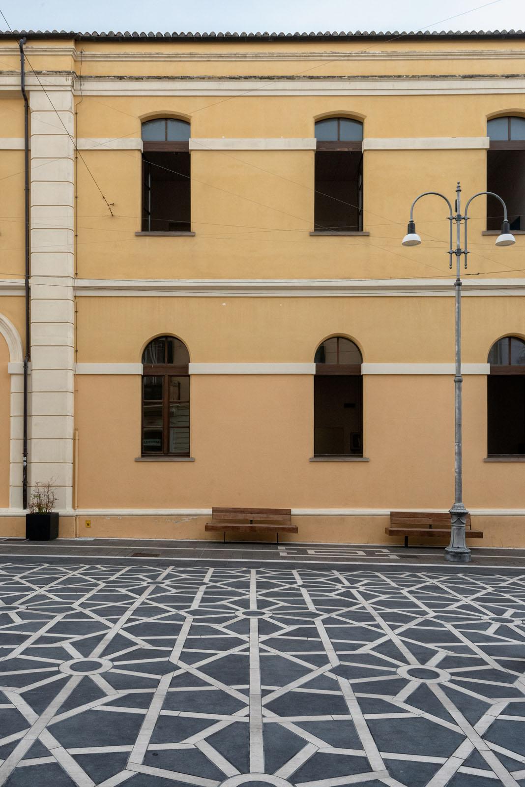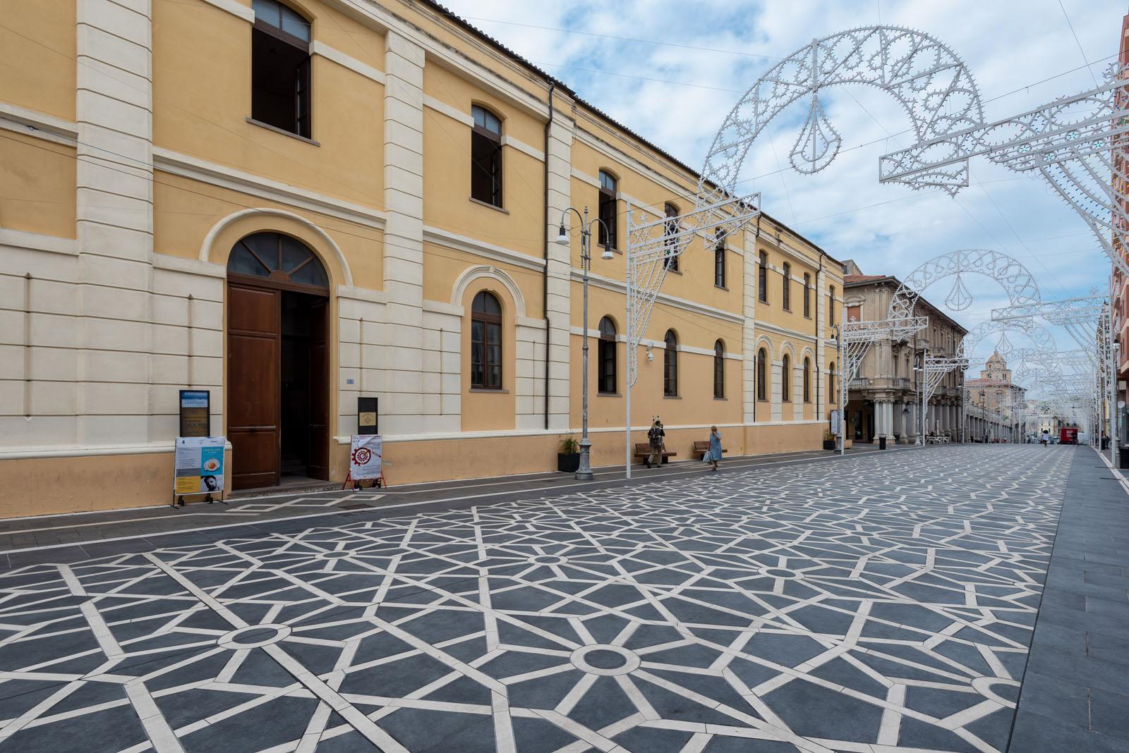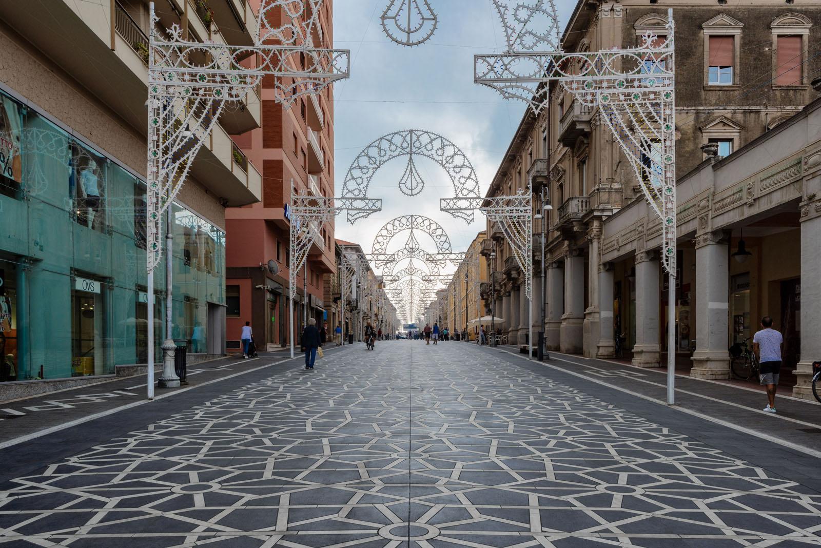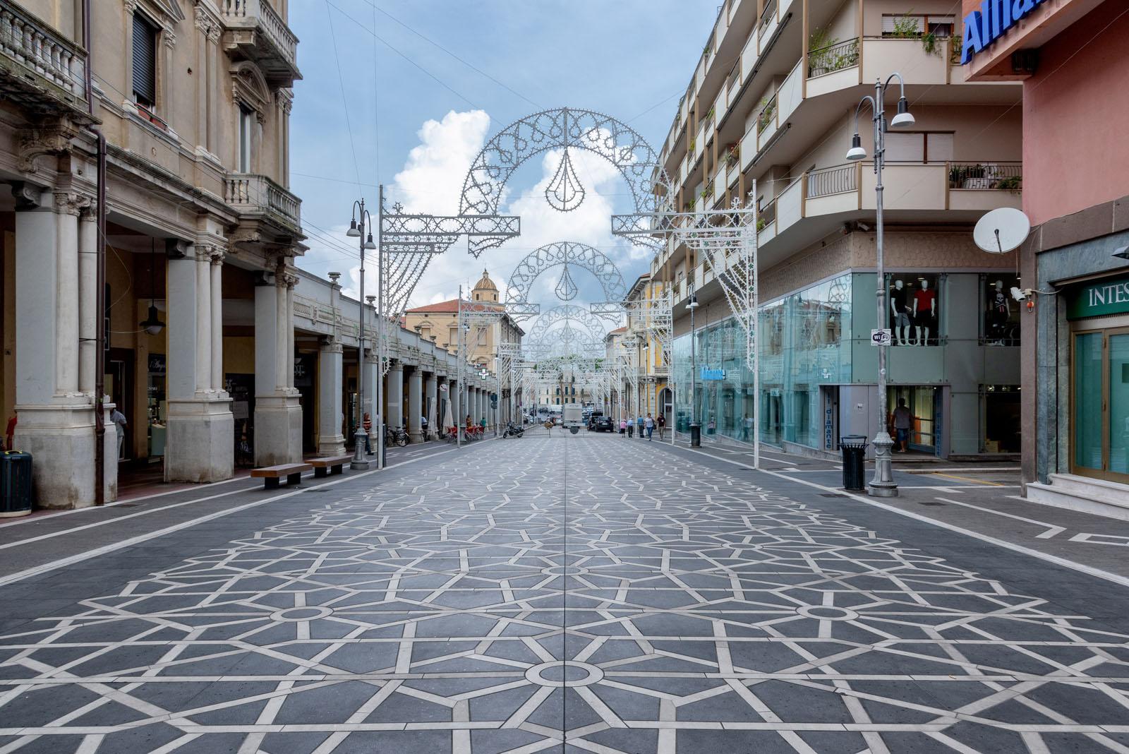 Il disegno pavimentale del principale asse cittadino, ora completamente pedonalizzato, si ispira ad