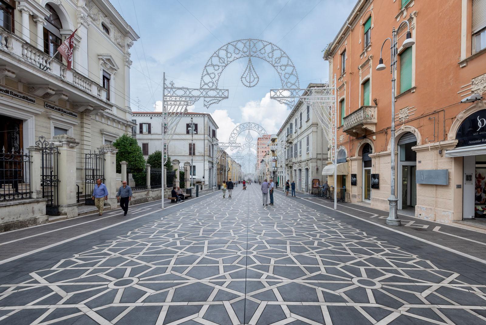 Un progetto di riqualificazione del sistema pubblico che restituisce ai cittadini uno spazio urbano fruibile, con una impressiva scenografia orizzontale dalla suggestiva trama geometrica: l’intervento di nuova pavimentazione in gres porcellanato di Corso Trento e Trieste nasce da una collaborazione tra il Comune di Lanciano, lo studio RicciSpaini Architetti Associati e il Dipartimento di Architettura e Progetto della Sapienza Università di Roma.