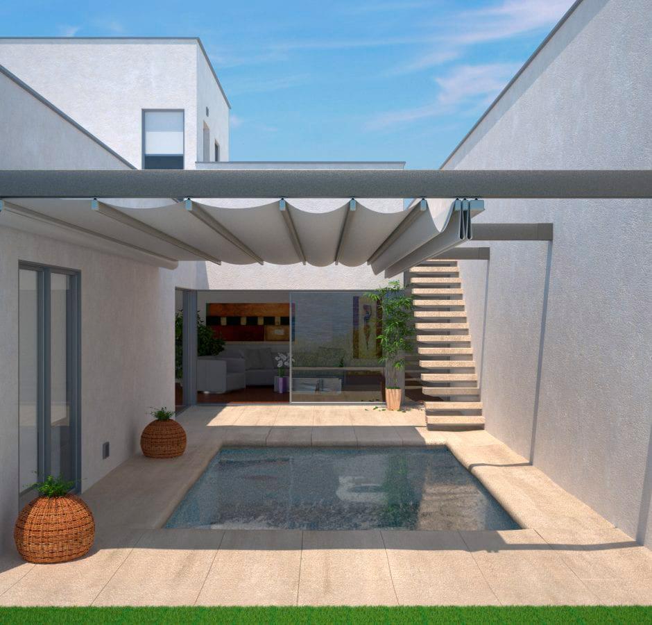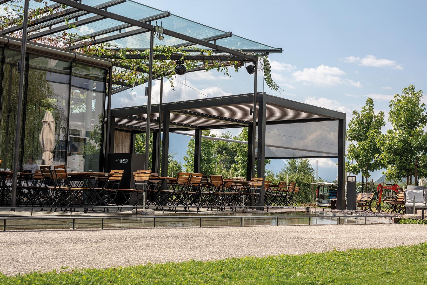 Una pergola, una struttura schermante, offre contemporaneamente apertura e protezione confermando che il piacere estetico generato da un ambiente deriva dal fatto che esso sia vissuto come soddisfacente e rassicurante per le necessità primarie.