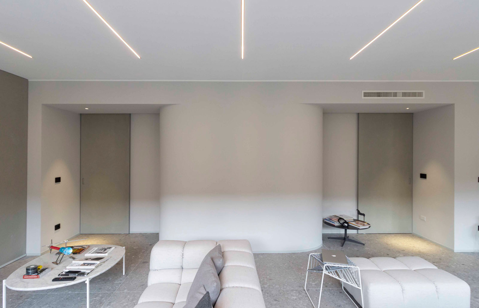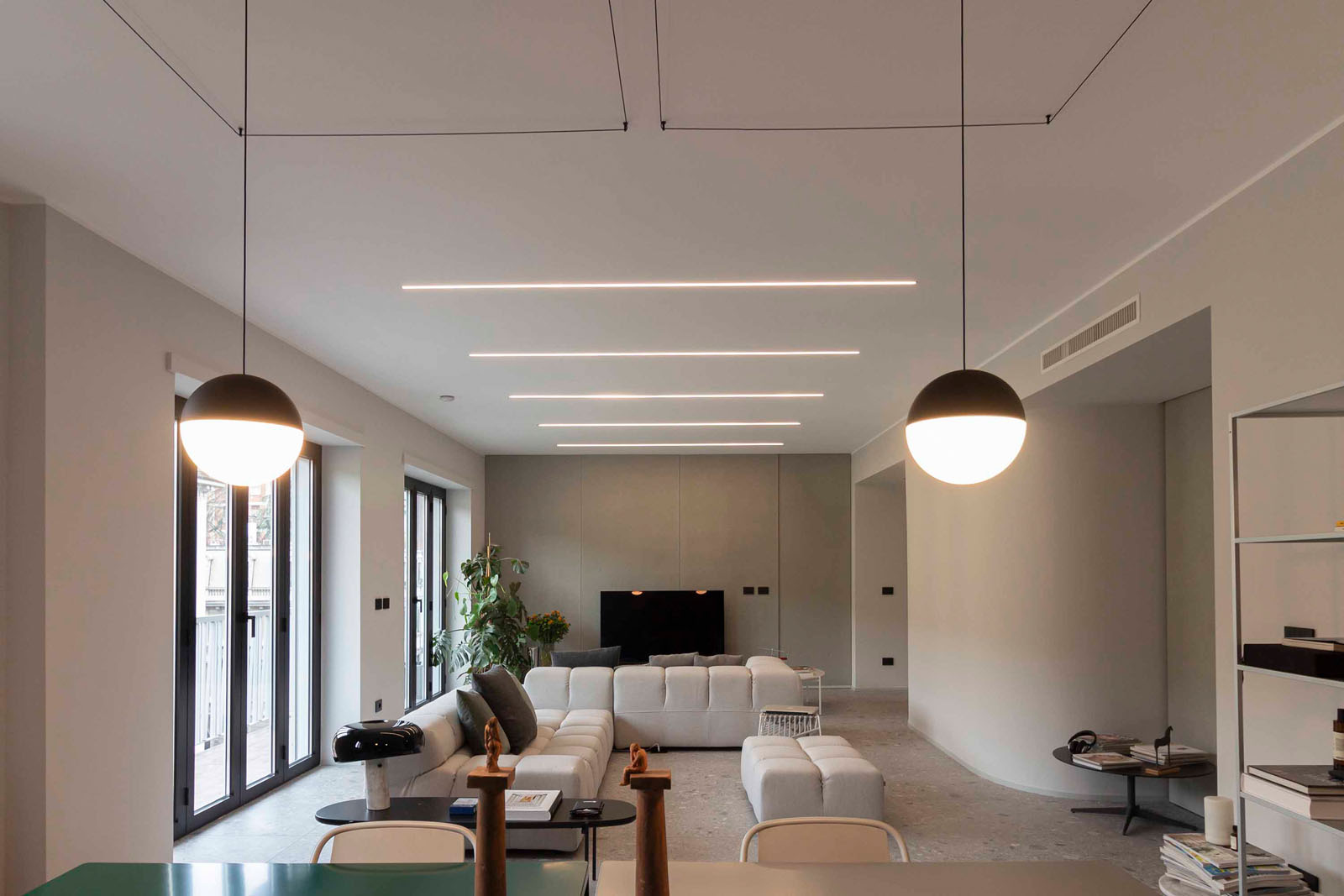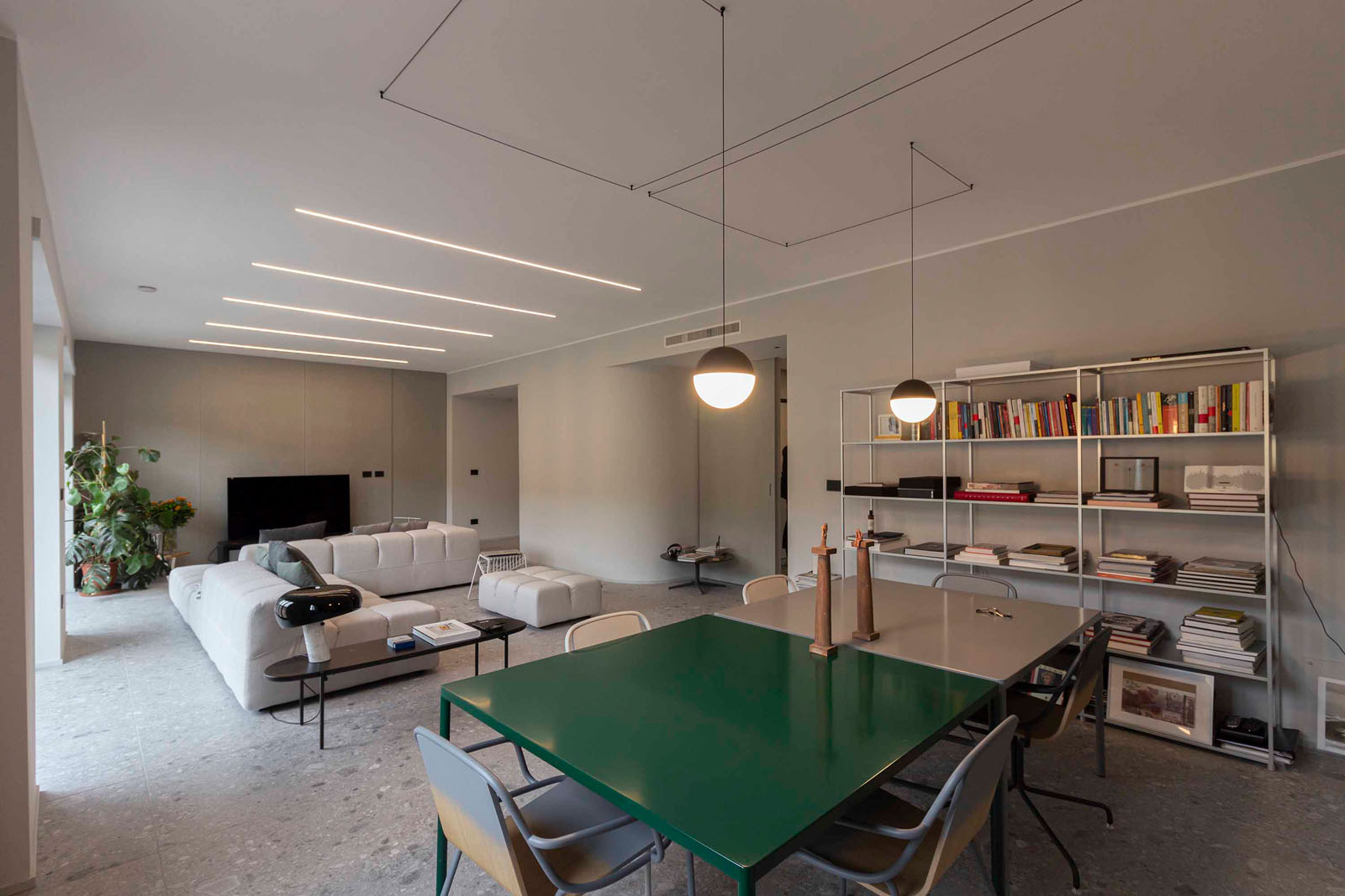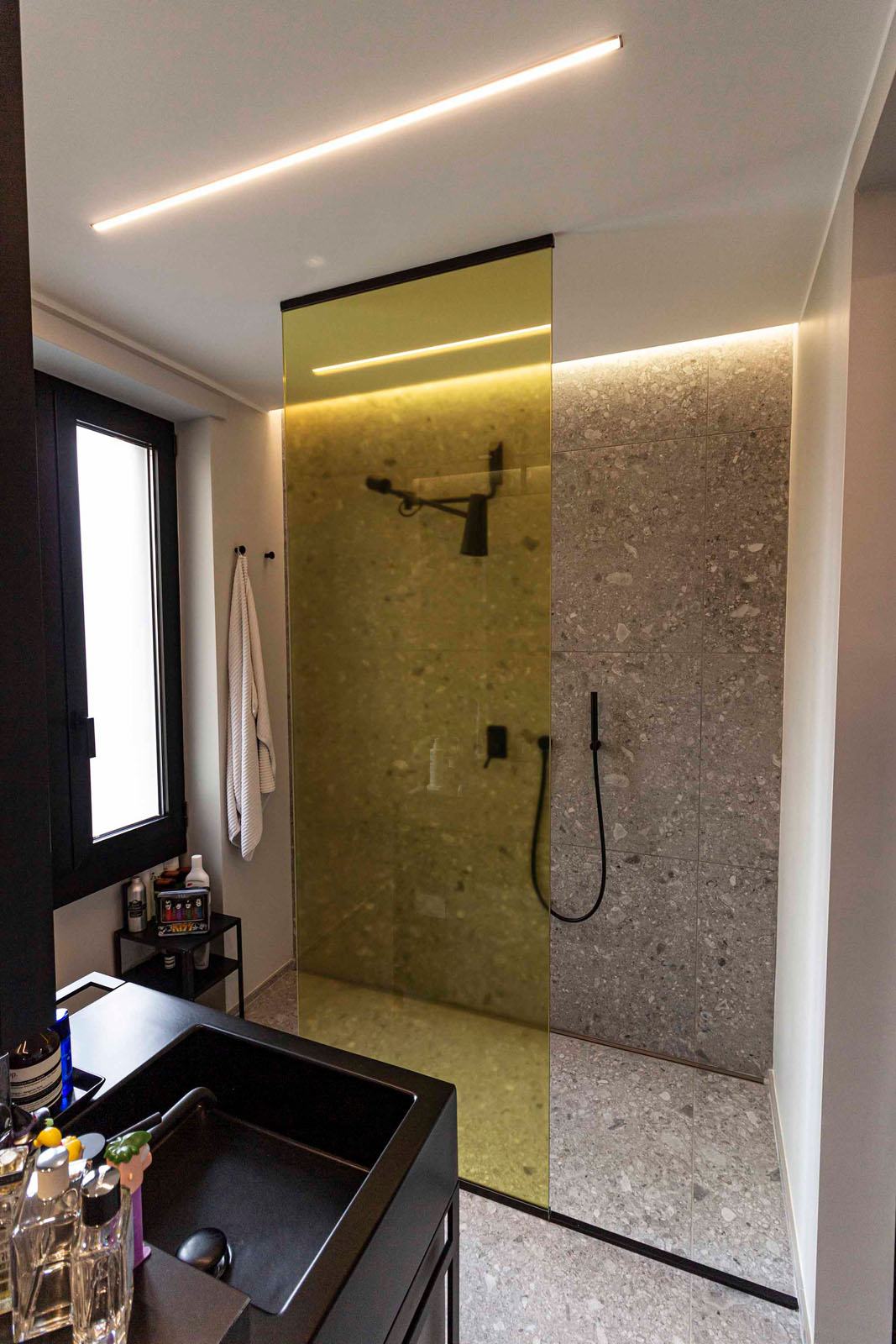ResidenzialeLinearità delle forme e rigore nella progettualità, per un effetto contemporaneo e minimal, sono gli elementi distintivi del progetto d’interior curato dall’Architetto Edoardo Barnini per l’elegante appartamento DG in via Goldoni a Milano. Gli spazi, fluidi e continui, sono stati enfatizzati dalla scelta di un unico materiale di rivestimento per tutta la pavimentazione dell’appartamento, Mystone Ceppo Di Grè colore Grey, nel grande formato 75x150 cm, utilizzato anche per i piatti doccia e per i rivestimenti a parete dei locali bagno e lavanderia. “Ho scelto il Ceppo di Gré non solo per il suo splendido effetto materico, ma anche come omaggio alla tradizione ornamentale dell’architettura lombarda, quasi a voler testimoniare con l’interior la collocazione spaziale del progetto”, racconta Edoardo Barnini.