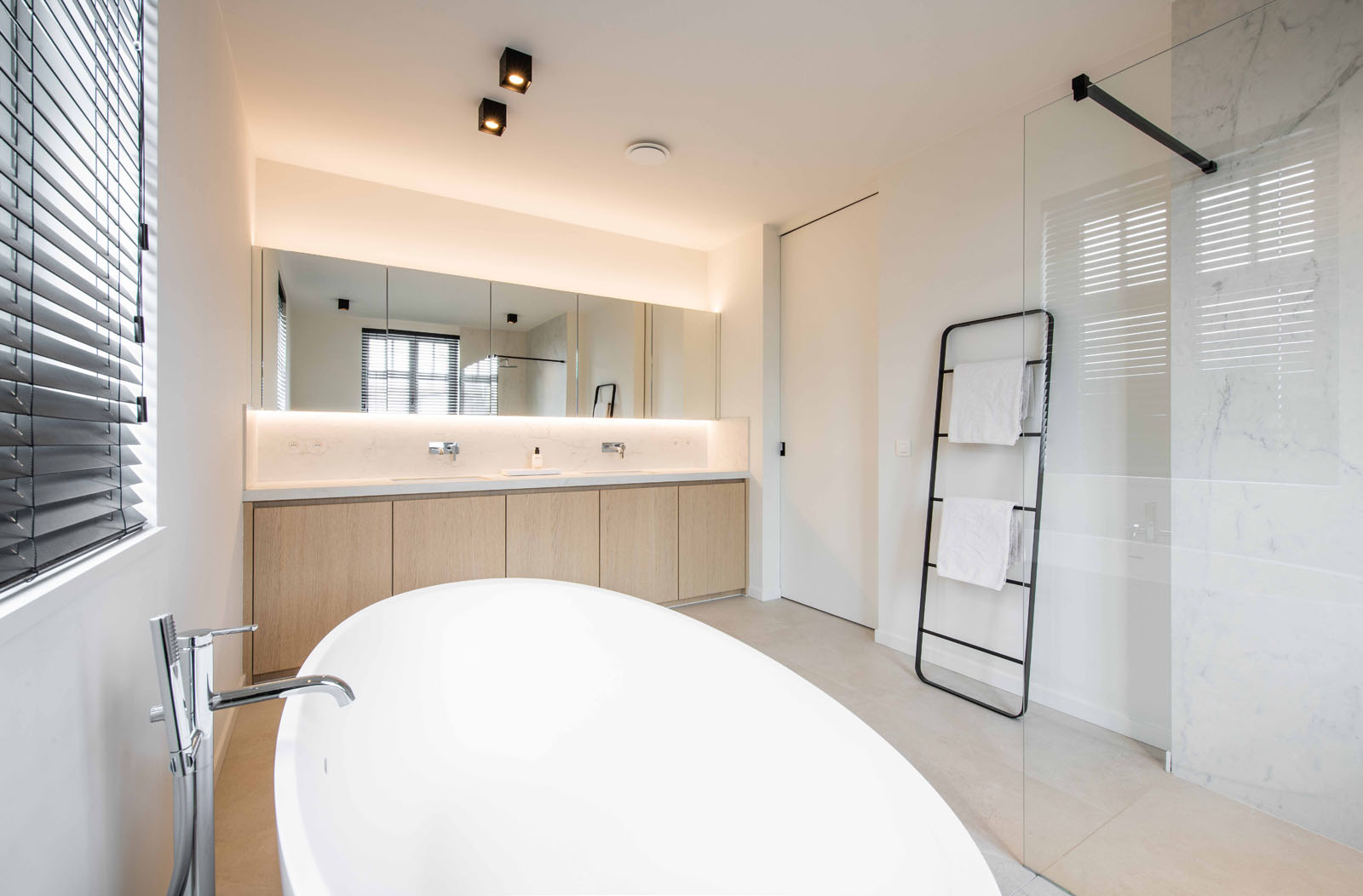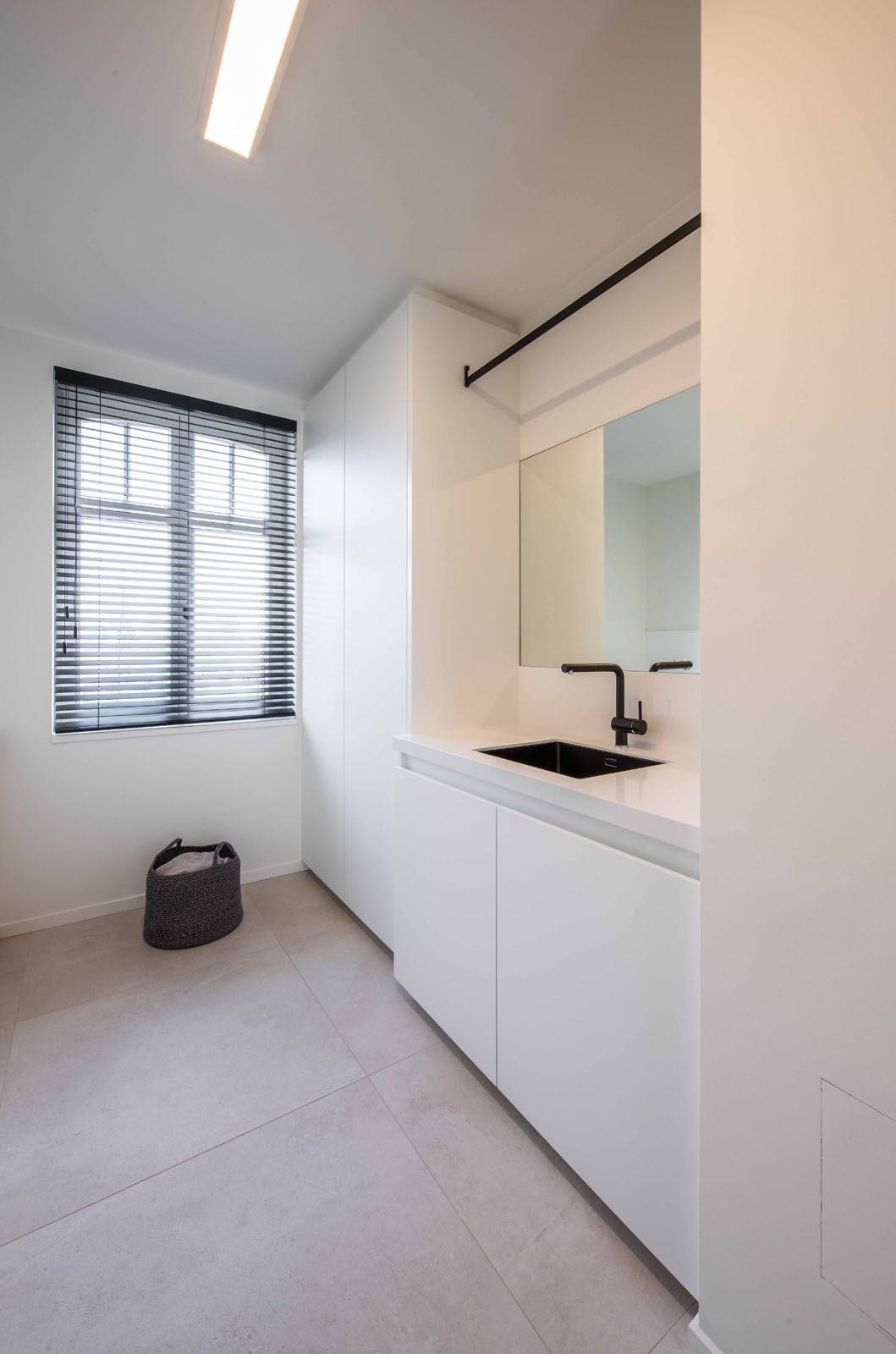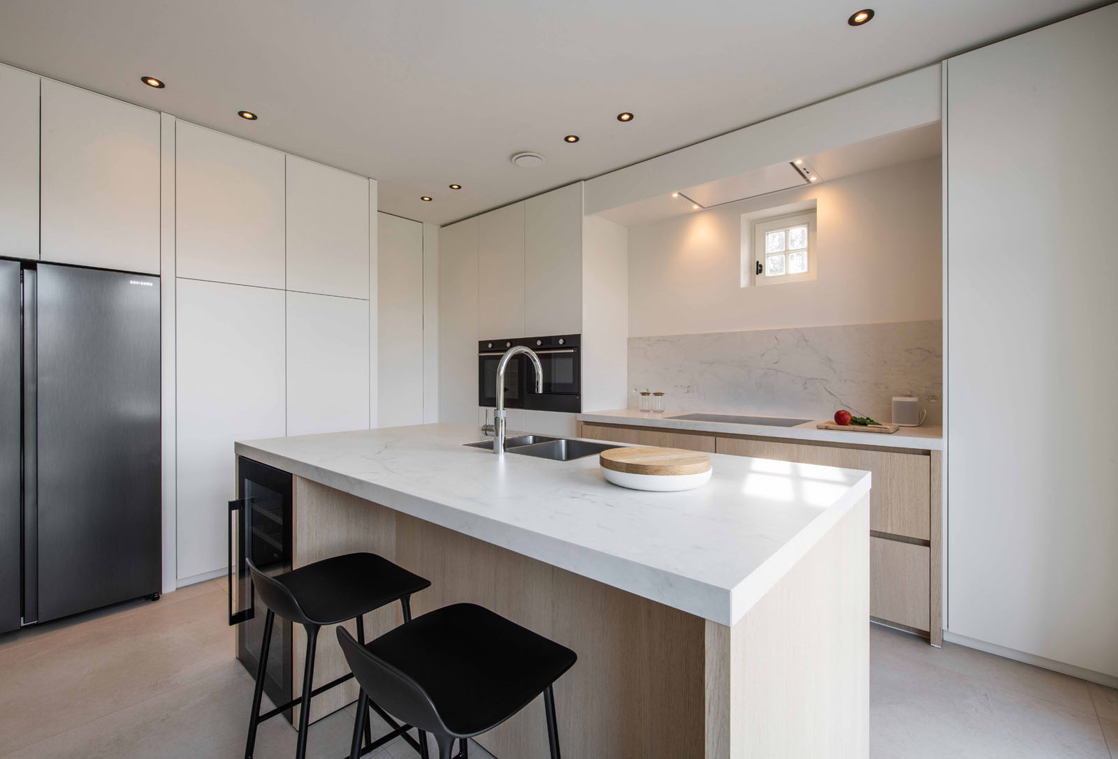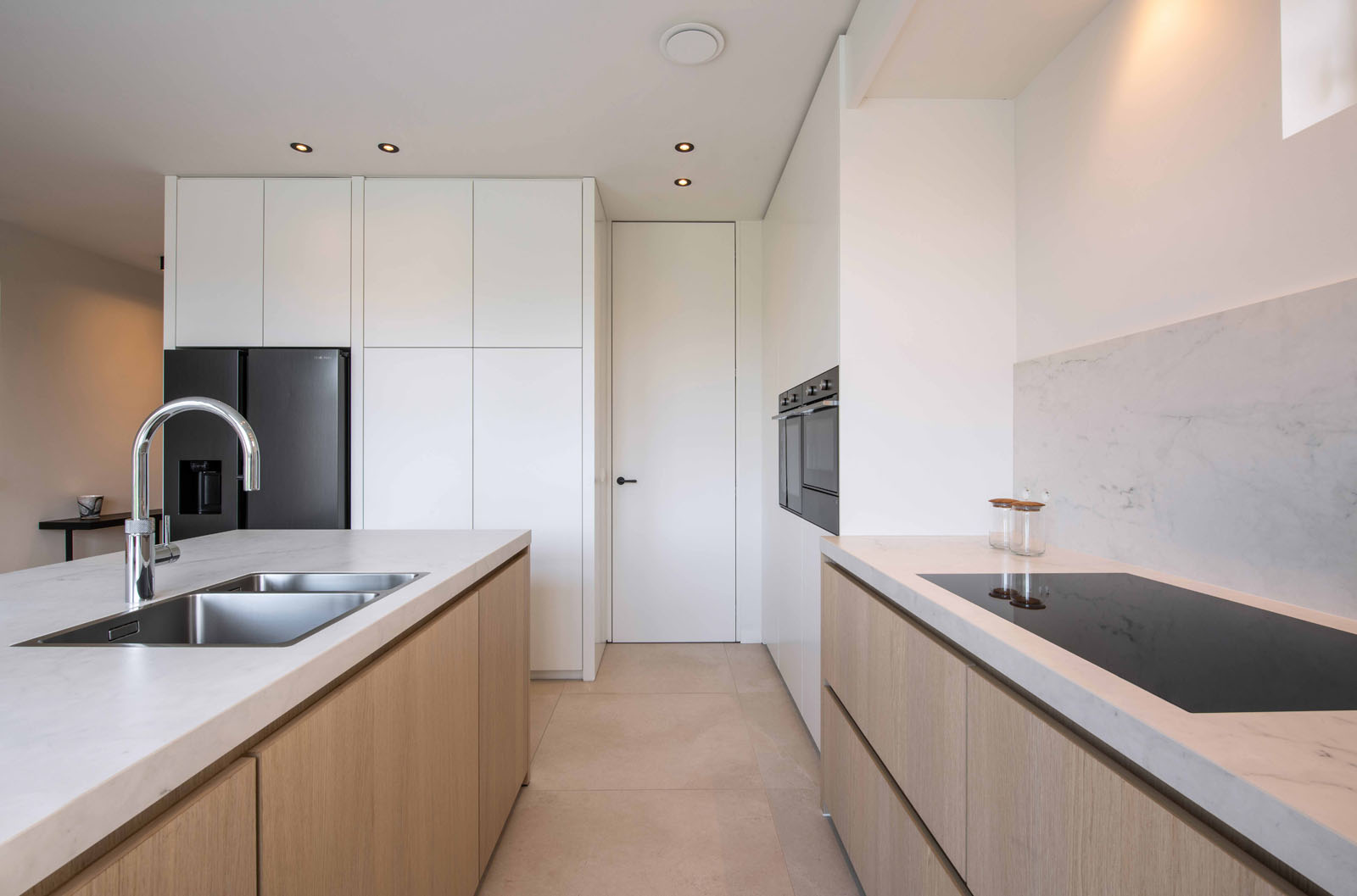L’appartamento a Kortessem, cittadina belga in provincia di Limburgo, che si trova in un quartiere residenziale composto da edifici di recente costruzione, è un progetto d’interior contemporaneo dallo stile moderno ed essenziale. Negli spazi interni dell’appartamento, ottimizzati e proporzionati con geometrie squadrate, che ne caratterizzano immediatamente il gusto attuale, le superfici materiche si articolano in orizzontale e verticale declinate tra le tonalità del bianco e del legno chiaro.