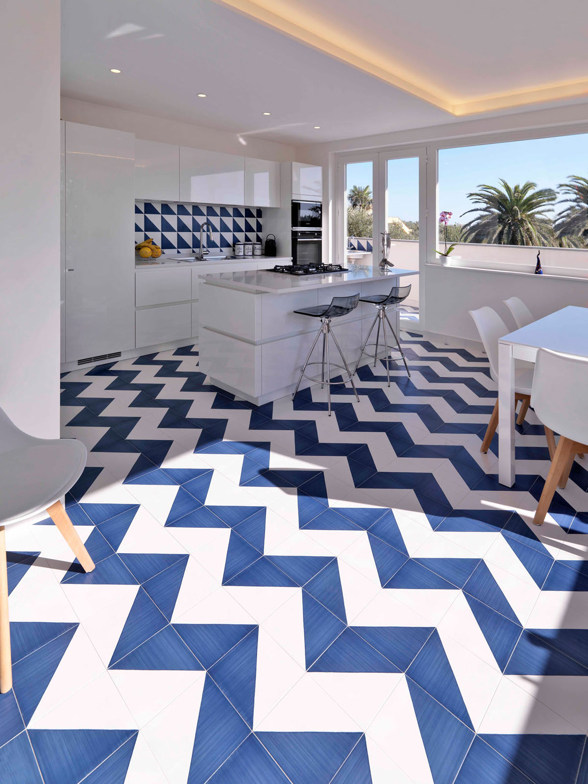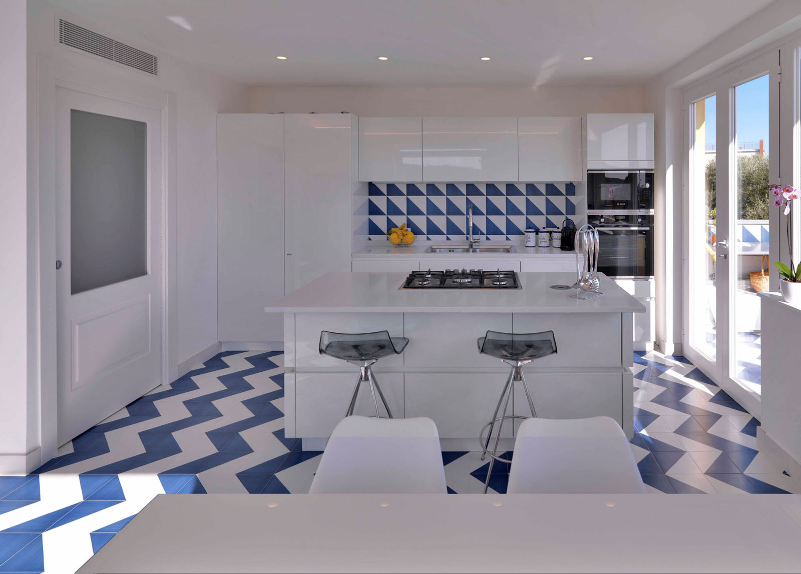 ResidenzialeDi recente una coppia di proprietari di un appartamento in costiera ha chiesto ai giovani progettisti di 87Studio di ripensare la loro casa ricordando la tradizione decorativa del maestro Gio Ponti. La collezione Scenario, parte del più ampio Progetto Crogiolo, è stata lo strumento con il quale definire i pattern di pavimenti e pareti, sia internamente che in terrazzo, consolidando il legame con lo straordinario paesaggio marittimo che circonda l’abitazione.
