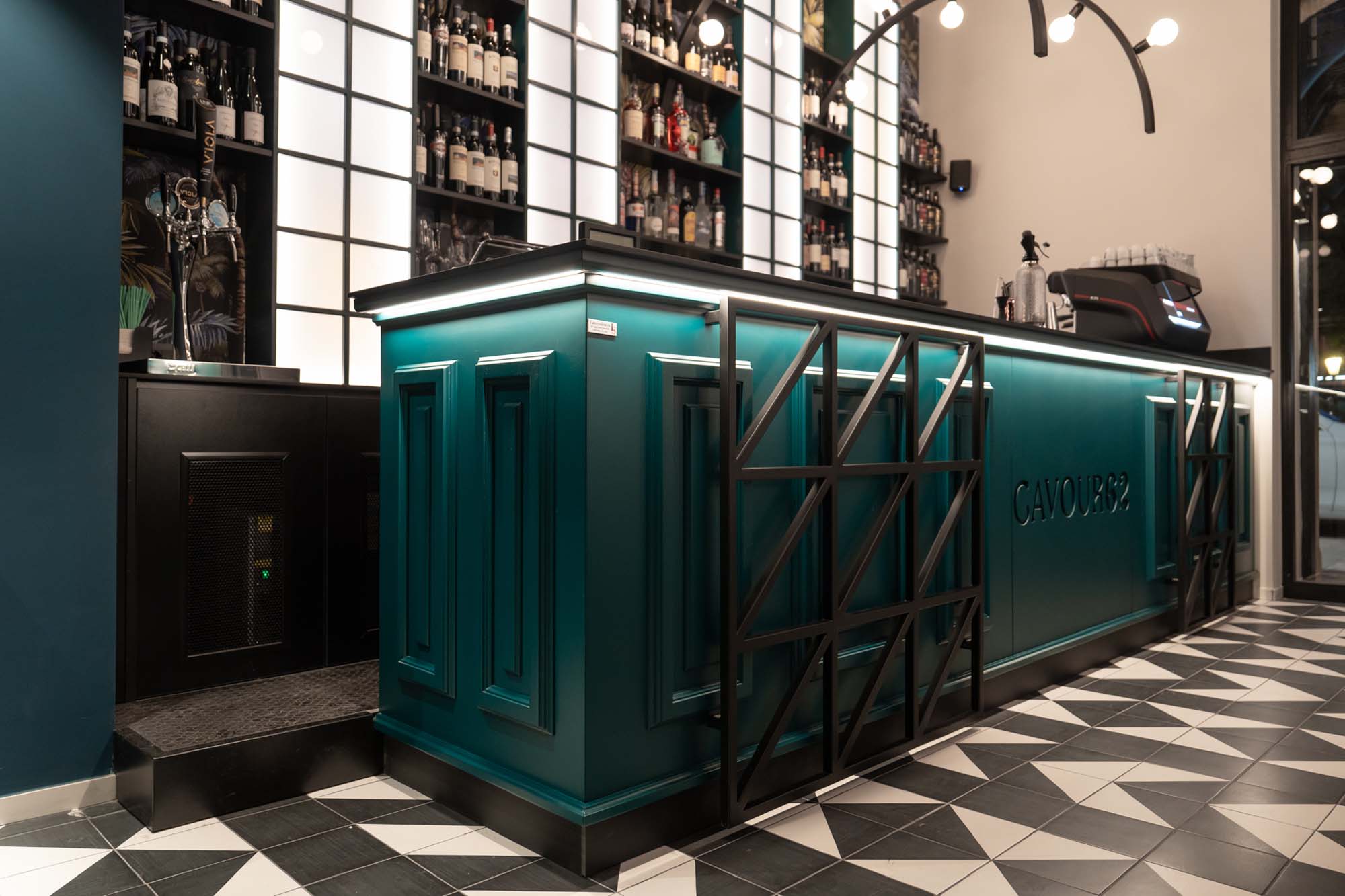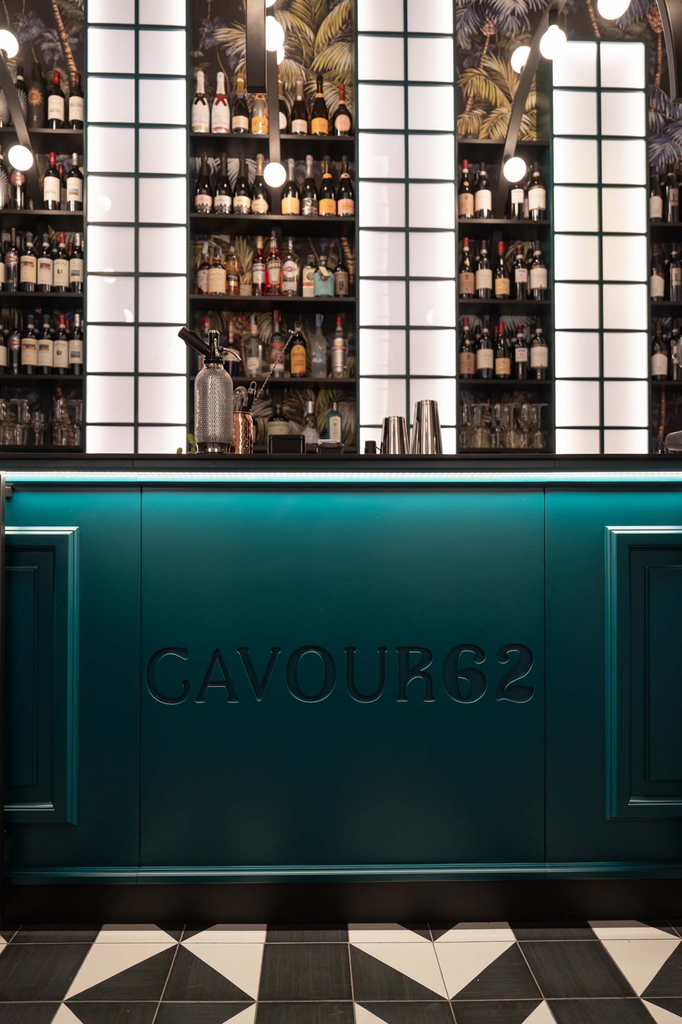 Atmosfere newyorkesi e dettagli tropical sono la cifra del nuovo Cavour 62, un cocktail bar dal sapore industrial nel pieno centro di Bari. Conosciuta come la via dello shopping, corso Cavour è l’arteria dei locali e dei negozi più alla moda della città. Il locale, realizzato dall’architetto Stefano Carlone e dal designer Vincenzo Berlingerio di K1 ArtStudio, è stato realizzato all’interno di un palazzo storico con ampie volte a crociera e alte vetrate che ne esaltano la verticalità. Piccolo e di grande personalità il Cavour 62 è diviso in due spazi, il primo ad uso bar, con un grande bancone colorato e bottiglie a vista, il secondo - più appartato – offre sedute e un’atmosfera più intima alla clientela.