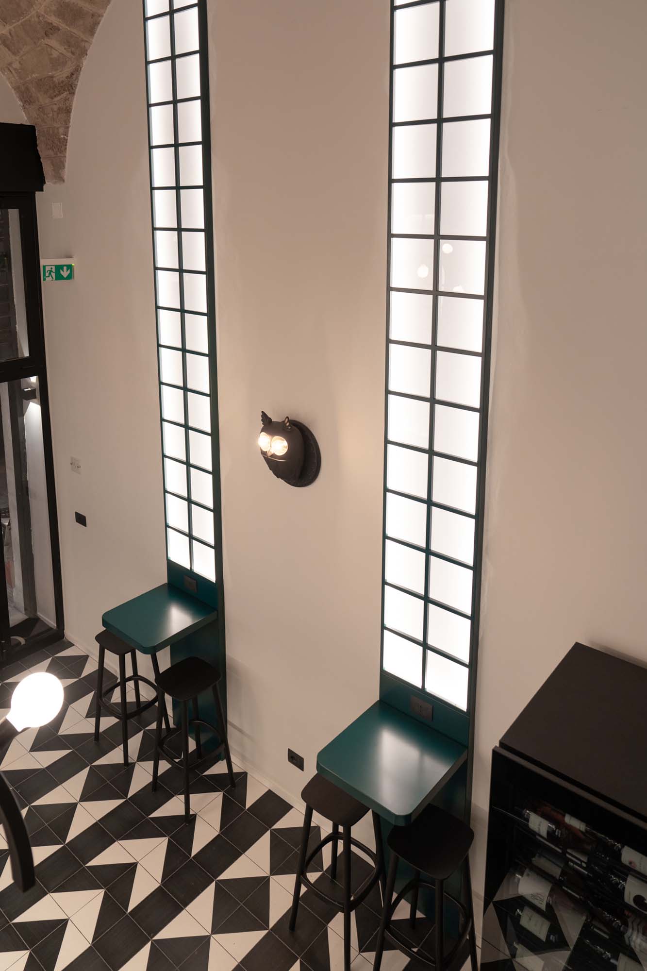 Ristorazione, ospitalità e tempo liberoAtmosfera metropolitana, antiche volte in pietra pugliese, pavimenti optical e texture tropical sono la ricetta vincente di un piccolo ed elegante cocktail bar nascosto nel pieno centro di Bari.