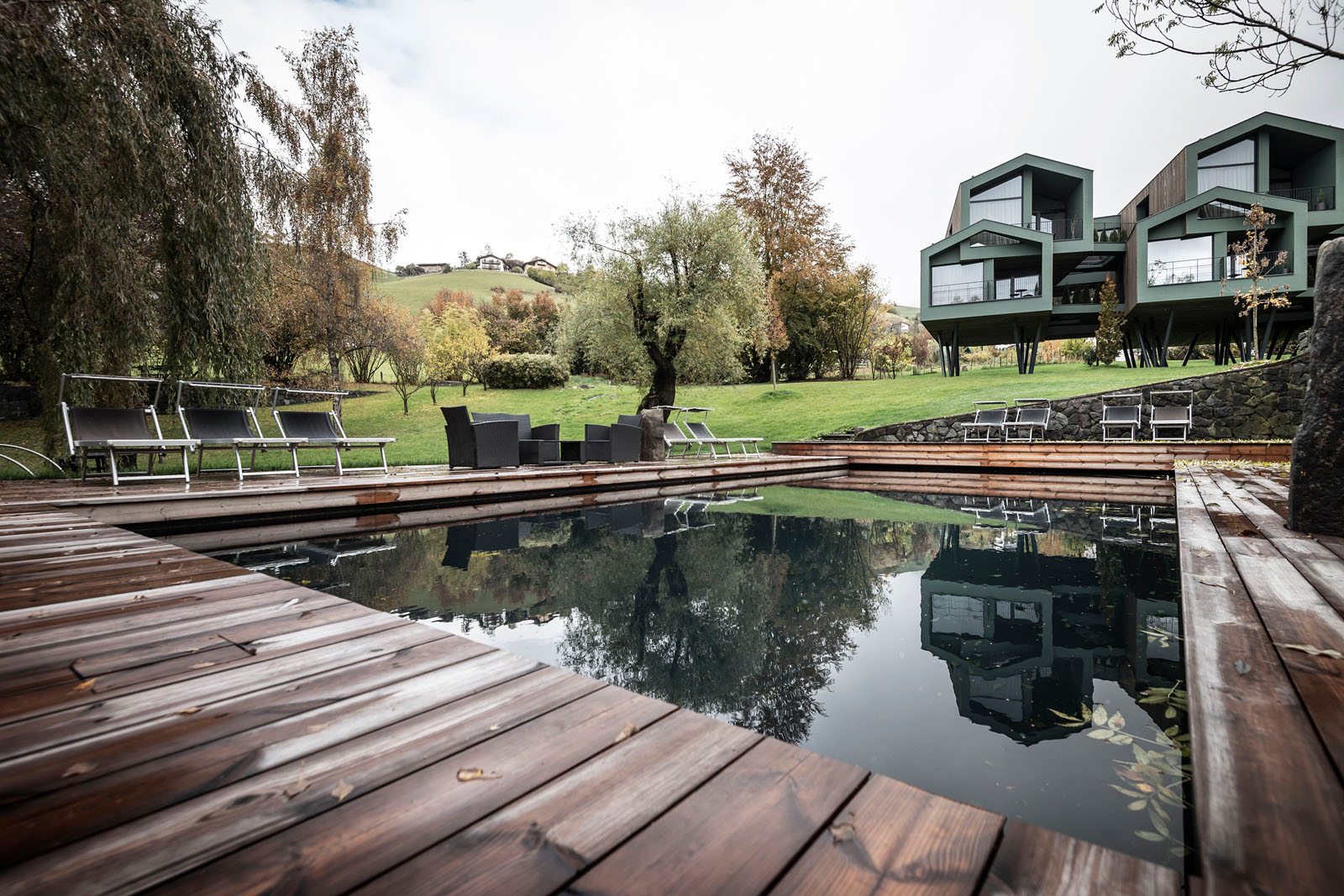 Ristorazione, ospitalità e tempo liberoLo studio NOA*, specializzato in architetture montane, ha progettato l’ampliamento dell’Hotel Floris a Siusi allo Sciliar, nelle Dolomiti. Le dieci suites, ognuna con cinque camere, sono concepite come dieci piccoli edifici che corrono in successione, leggermente sfalsati e sospesi da terra per mantenere incontaminato e libero allo sguardo il secolare parco.